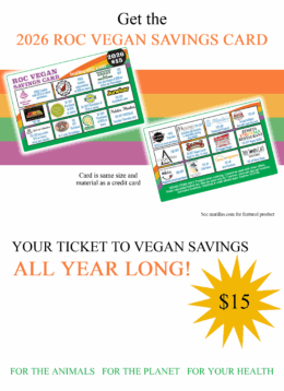 The 2026 Roc Vegan Savings Cards are back from the printer and being distributed now. $15 each for 23 great discounts you can use over and over throughout 2026. Order online, no shipping, no tax! Orders will go out December…